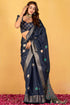 Confounding Navy Blue Foil Printed Dola Silk Saree With Ratatouille Blouse Piece