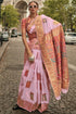 Pleasant Baby Pink Pashmina saree With Vivacious Blouse Piece
