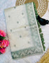 Stunner Off White Embroidery Work Tussar Silk Saree With Elision Blouse Piece