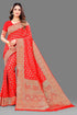 Sensational Red Soft Banarasi Silk Saree With Lovely Blouse Piece