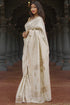 Stunning Beige Linen Silk Saree With Lovely Blouse Piece
