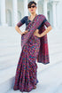 Elegant Navy Blue Pashmina saree With Intricate Blouse Piece