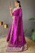 Redolent Purple Embroidery Work Tussar Silk Saree With Splendiferous Blouse Piece