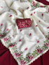 Whimsical Off White Embroidery Work Crush Chiffon Silk Saree With Blissful Blouse Piece