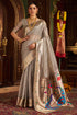 Luxuriant Grey Organza Paithani Silk Saree With Intricate Blouse Piece