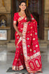 Prodigal Red Soft Banarasi Silk Saree With Desiring Blouse Piece