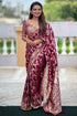 Alluring Wine Soft Banarasi Silk Saree With Gratifying Blouse Piece