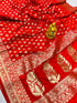 Fugacious Red Banarasi Silk Saree With Seraglio Blouse Piece