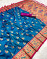 Beautiful Blue Paithani Silk Saree With Opulent Blouse Piece