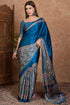 Delectable Rama Ajrakh Printed Semi Modal Silk Saree With Classic Blouse Piece