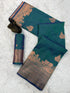 Embellished Rama Soft Banarasi Silk Saree With Gossamer Blouse Piece