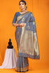 Flaunt Grey Kanjivaram Silk With Arresting Blouse Piece