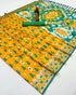 Girlish Yellow Soft Banarasi Ikkat Saree With Traditional Blouse Piece
