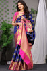 Prominent Navy Blue Banarasi Silk Saree With Most Adorable Blouse Piece