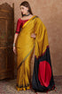 Sensational Yellow Ajrakh Printed Semi Modal Silk Saree With Resonant Blouse Piece