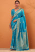 Supernal Firozi Banarasi Tussar Silk Saree With Rhapsody Blouse Piece