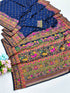 Demanding Navy Blue Nylon Dola Pashmina Saree With Gleaming Blouse Piece