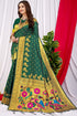 Ailurophile Dark Green Pure Paithani Silk Saree With Jazzy Blouse Piece