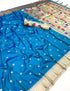 Nebula Blue Paithani Silk Saree With Deserving Blouse Piece