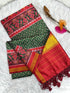 Indulge in the opulence of our Ikkat Printed Patola Silk saree, a masterpiece of craftsmanship and luxury. Meticulously woven from pure silk, this saree features intricate patola designs that have been printed with precision. Each thread tells a story of heritage and sophistication, making it a must-have for any discerning fashionista.