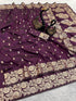 Alluring Wine Soft Banarasi Silk Saree With Attractive Blouse Piece