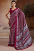Proficient Wine Ajrakh Printed Satin Silk Saree With Stunner Blouse Piece