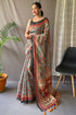 Radiant Dark Grey Kalamkari Printed Saree With Entrancing Blouse Piece