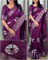Woebegone Purple Digital Printed Dola Silk Saree With Incredible Blouse Piece