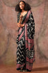 Comely Black Ajrakh Printed Satin Silk Saree With Demanding Blouse Piece