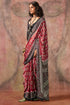 Demesne Red Ajrakh Printed Satin Silk Saree With Embrocation Blouse Piece