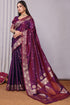 Forbearance Wine Soft Banarasi Silk Saree With Demanding Blouse Piece