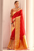 Most Stunning Red Soft Banarasi Silk Saree With Embrocation Blouse Piece