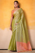 Precious Green Soft Banarasi Tissue Silk Saree With Unequalled Blouse Piece