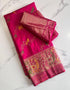Enamoring Dark Pink Soft Banarasi Silk Saree With Opulent Blouse Piece