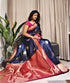 Gossamer Navy Blue Soft Banarasi Silk Saree With Propinquity Blouse Piece
