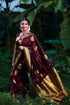 Snazzy Wine Soft Banarasi Silk Saree With Gratifying Blouse Piece