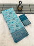 Outstanding Sky Soft Banarasi Tissue Silk Saree With Scintilla Blouse Piece