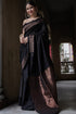 Entrancing Black Soft Silk Saree With Brood Blouse Piece