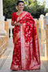 Ornate Red Soft Banarasi Silk Saree With Ephemeral Blouse Piece