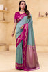 Fantabulous Grey Banarasi Satin Silk Saree With Imaginative Blouse