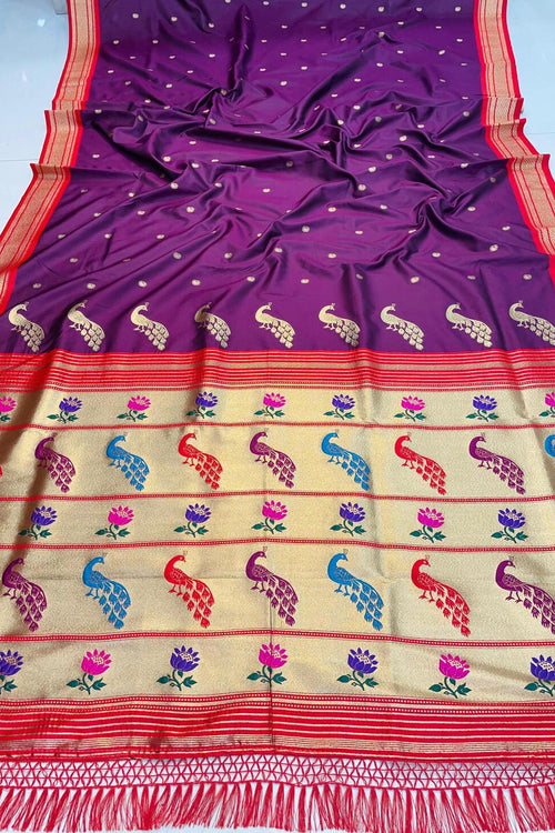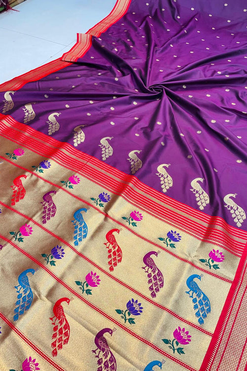Admirable Purple Paithani Silk Saree With Cynosure Blouse Piece