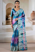Attractive Blue Digital Printed Satin Silk Saree With Fantabulous Blouse Piece