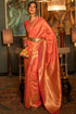 Breathtaking Peach Kanjivaram Silk Saree With Mesmeric Blouse Piece