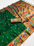 Capricious Dark Green Paithani Silk Saree With Beautiful Blouse Piece