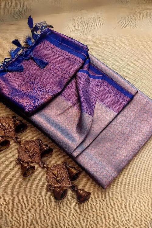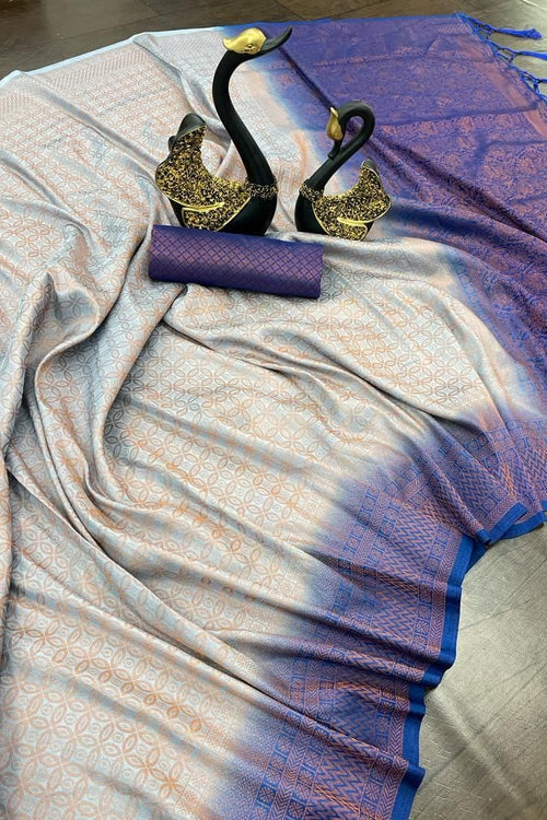 Capricious Grey Kanjivaram Silk Saree With Deserving Blouse Piece