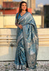 Delightful Firozi Soft Silk Saree With Petrichor Blouse Piece
