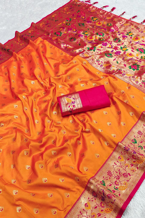 Denouement Orange Paithani Silk Saree With Flattering Blouse Piece