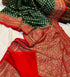 Designer Dark Green Soft Banarasi Silk Saree With Hypnotic Blouse Piece