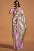 Eloquence Off White and Lavender Kanjivaram Silk Saree With Prettiest Blouse Piece