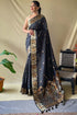 Embrocation Black Soft Banarasi Silk Saree With Lassitude Blouse Piece